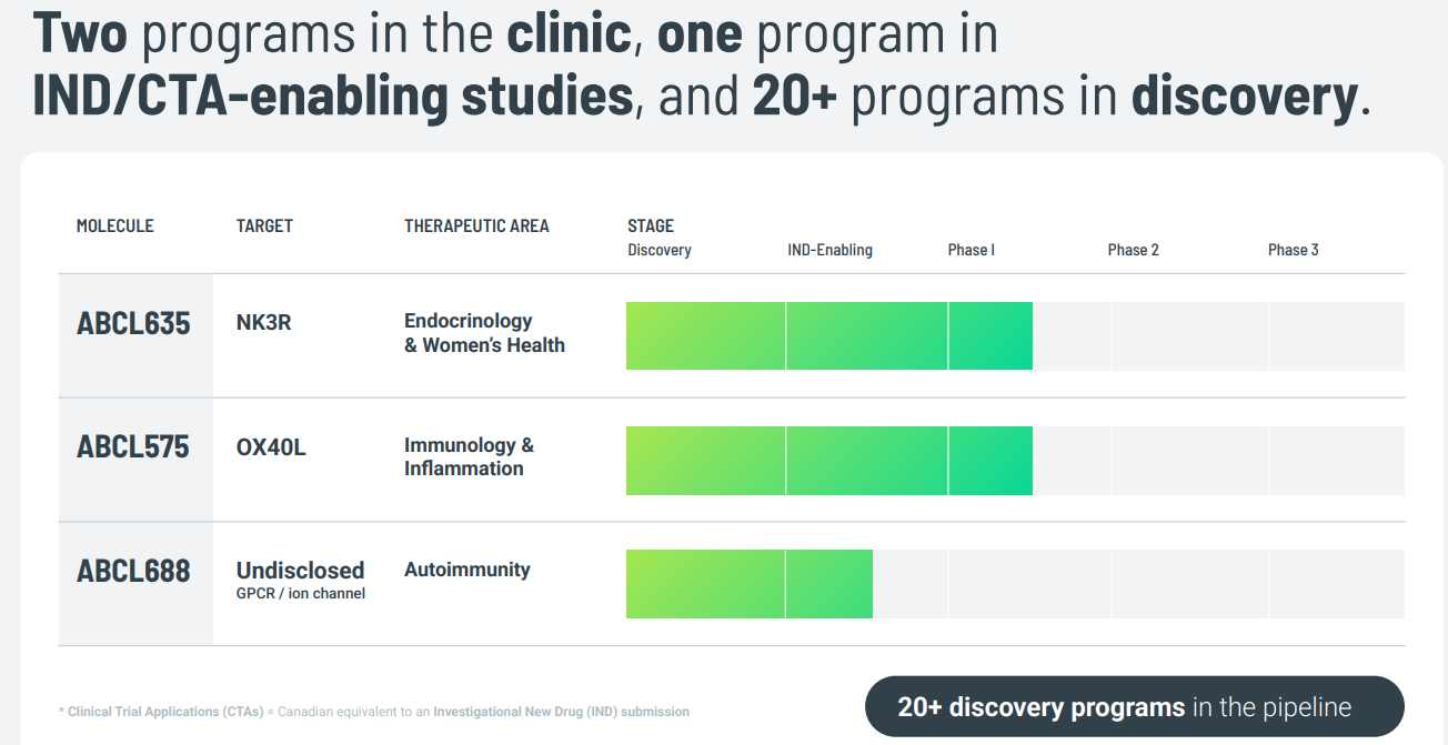 first, the potential of its internal pipeline with candidates such as ABCL635 and ABCL575, targeting multi-billion-dollar markets.