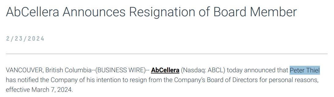 Billionaire investor and Palantir co-founder Peter Thiel played a pivotal role in AbCellera’s transition from a quiet research firm to a Silicon Valley-style “tech-bio” powerhouse. Thiel joined AbCellera’s Board of Directors in November 2020, just weeks before the IPO. His involvement was seen as a massive vote of confidence in the company’s “Zero to One” potential, Thiel’s philosophy of investing in companies that create entirely new categories rather than incremental improvements.