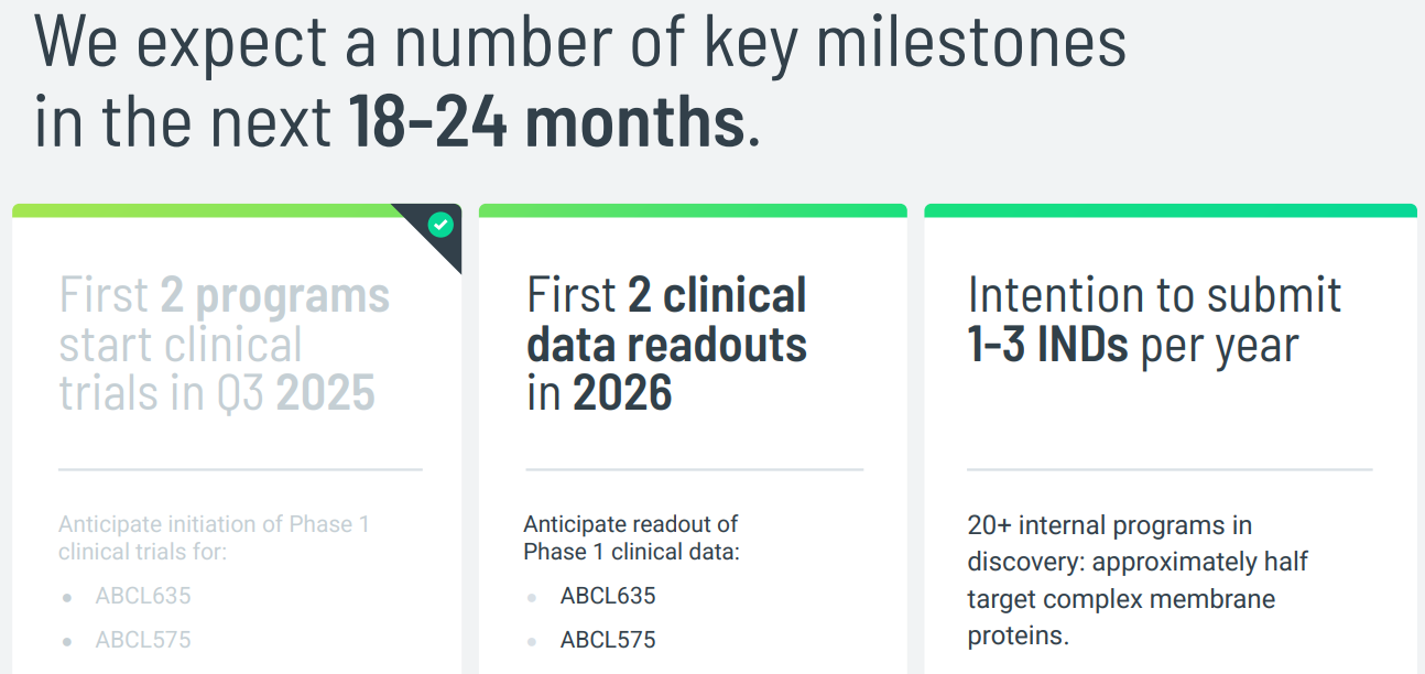 Phase 1 clinical data readouts for ABCL635 and ABCL575 are expected in 2026.