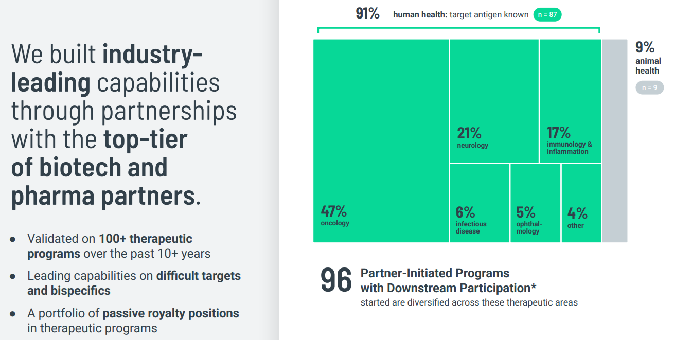 In addition to its own development, AbCellera has a passive royalty portfolio:
