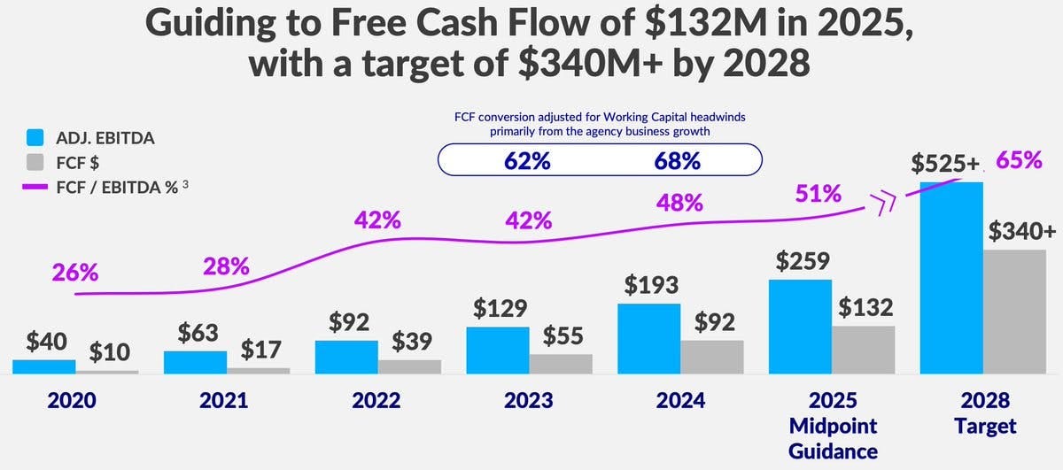 Zeta Global plans to significantly increase revenue, EBITDA, and free cash flow over the next four years. The company is targeting $132 million in free cash flow for 2025, with the goal of surpassing $340 million by 2028.