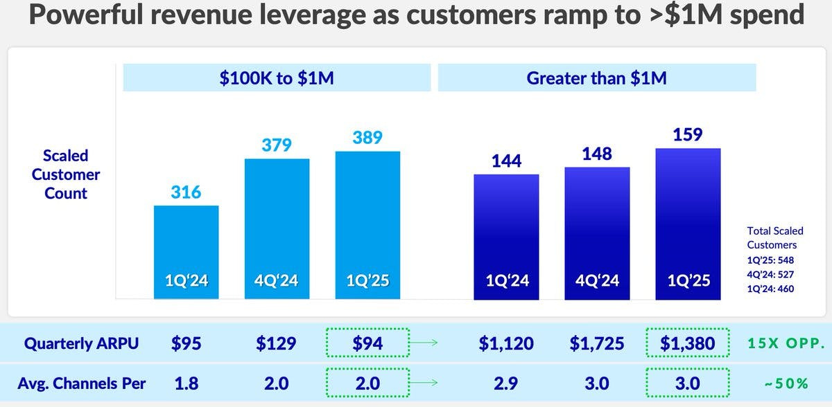 Scaled customers increased to 548 (up from 460 in Q1 2024).